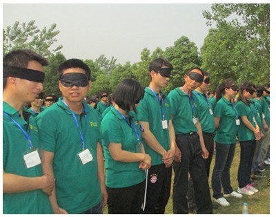盲人摸號(hào)項(xiàng)目就是在完全丟棄視覺(jué)和聽(tīng)覺(jué)的封閉狀況下完成的一個(gè)挑戰(zhàn)。拓展老師要求我們蒙上眼罩,不能發(fā)聲,然后發(fā)給每人一個(gè)數(shù)字,再打亂我們的站位,要在最短的時(shí)間內(nèi)根據(jù)數(shù)字的大小順序排列站好。對(duì)于正常人來(lái)說(shuō)再簡(jiǎn)單不過(guò)的事,但是在這種眼、耳無(wú)用的狀況下顯得尤其困難。