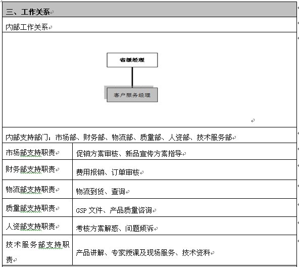 二、編寫銷售崗位說明書,必須遵循“源于崗位一線”的原則。三個(gè)要求:(1)誰明白(市場(chǎng)特點(diǎn):產(chǎn)品銷售處在的階段、產(chǎn)品擁有的終端用戶和購買習(xí)慣、經(jīng)銷商的首要需求、銷售活動(dòng)組織形式)、誰起草,如果人力資源部門是起草人,就必須深入到銷售一線崗位了解市場(chǎng)情況再打草稿;(2)與銷售人員的實(shí)際能力匹配(閱歷和能力);(3)明確銷售支持部門(人員)的職責(zé)(姓名、聯(lián)系方式)。