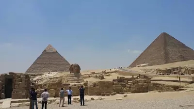 5月31日,陽光明媚,天空如洗。我們一行五人來到位于埃及開羅西南邊的金字塔。還沒下車,就見到一架架中世紀風格的馬車混入現(xiàn)代氣息的車流和人流中,嗒嗒滴飛馳穿梭;一陣陣馬屬動物的味道夾雜在燥熱的空氣中,不適的同時也給人一種自然而真實的歷史感。