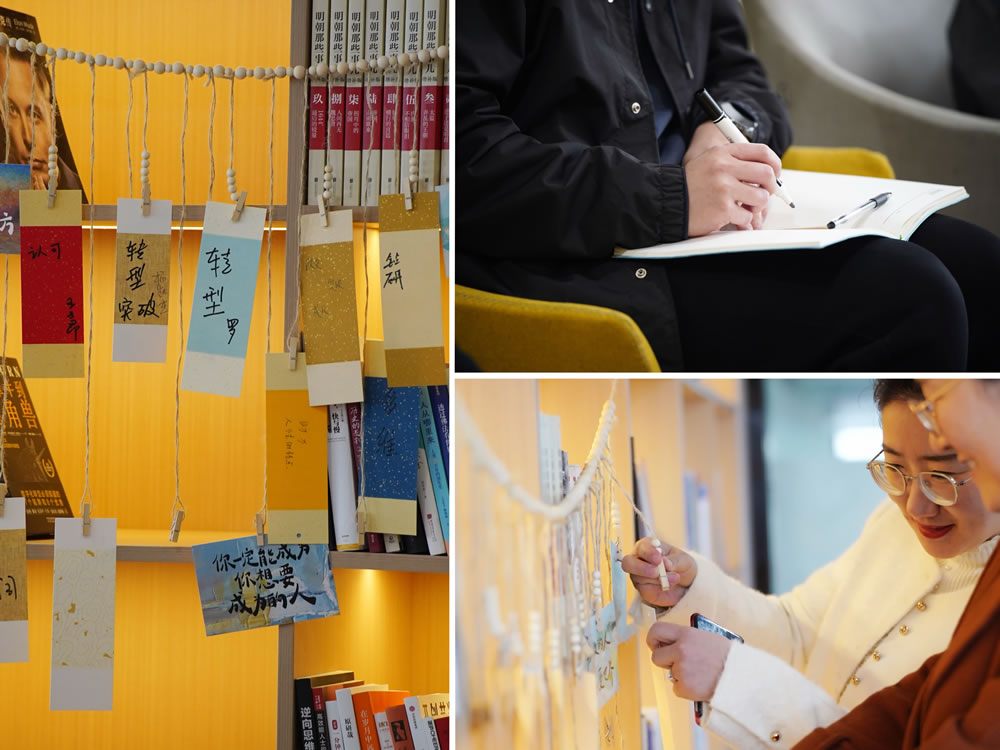 活動(dòng)開(kāi)場(chǎng)后,每位參與者以“2025年最想突破的職場(chǎng)關(guān)鍵詞”為引,寫(xiě)下新年的成長(zhǎng)期許?;厥?shū)友們將關(guān)鍵詞書(shū)簽懸掛于讀書(shū)室主題墻,再以"可落地行動(dòng)項(xiàng)+計(jì)劃閱讀書(shū)目"構(gòu)建年度閱讀企劃。