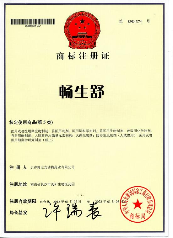 暢生舒商標注冊證
